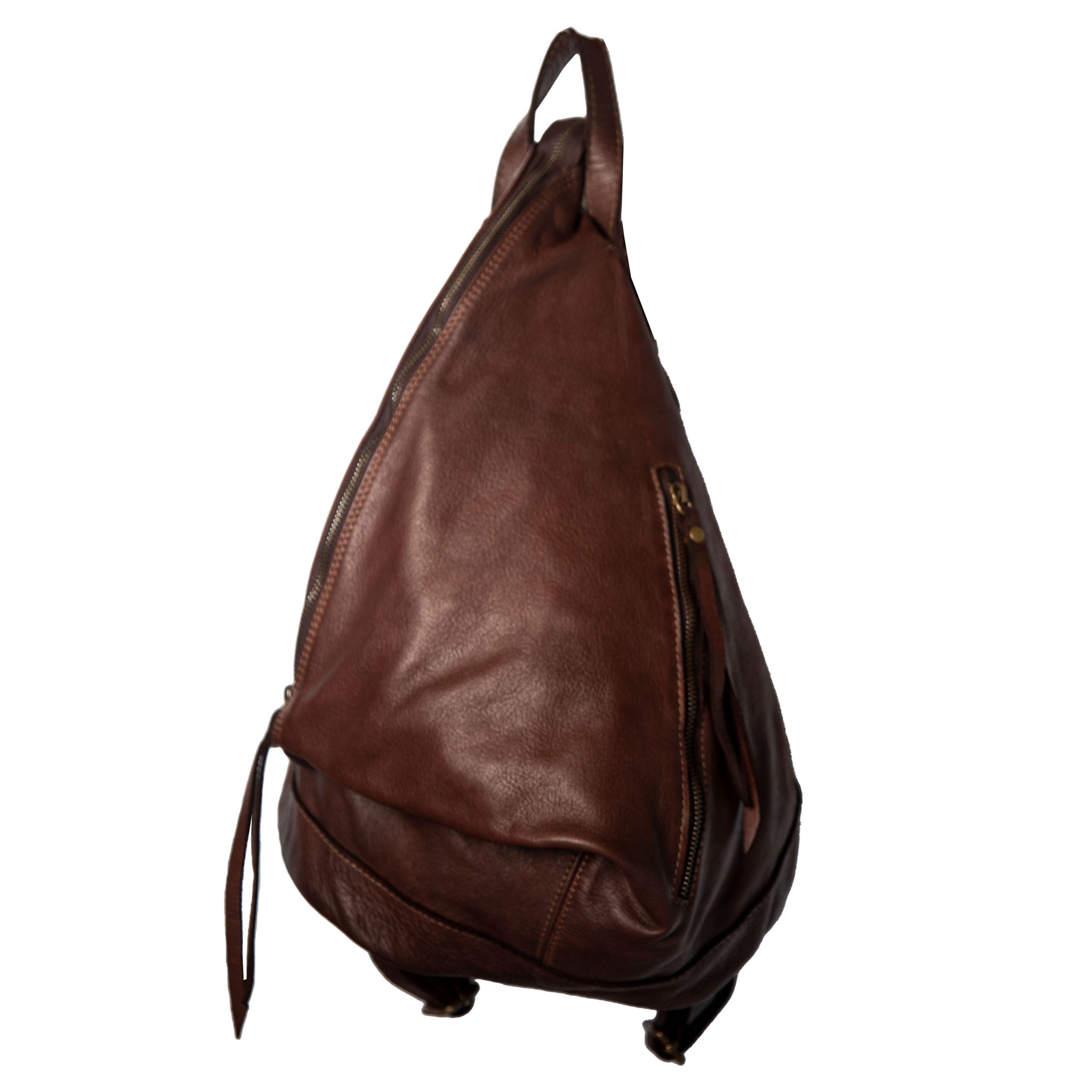zaino in pelle lavata morbida e leggera trasformabile grazie alla doppia possibilità di agganciatura  in vera agnello: